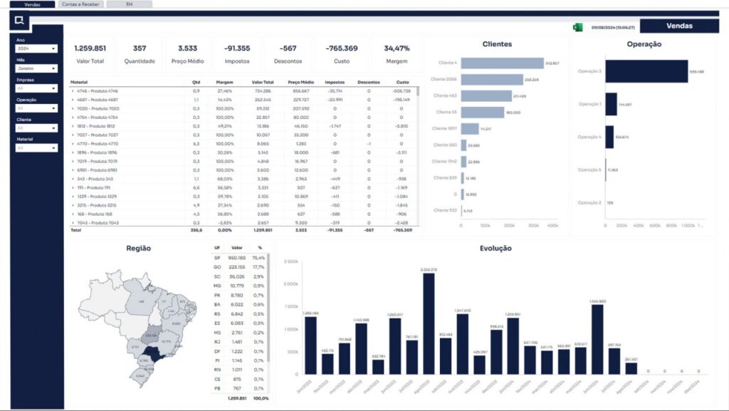 Do dado bruto à visualização inteligente, com dashboards dinâmicos e insights em tempo real.