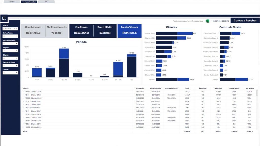 Com dashboards personalizados por área, você visualiza tudo o que realmente importa de forma intuitiva, dinâmica e 100% atualizada de forma automática.